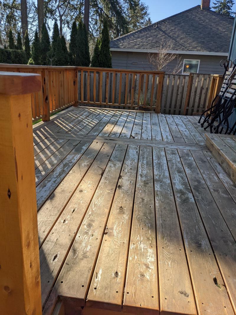 TimberPro Clean & Brite formula is safe to use, won't harm surrounding plants and does a great job for general cleaning. To restore the color and natural beauty of your weathered, discolored deck, their Strip & Brite formula is ideal and will remove old, flaking finishes, and brighten the wood back to its original color.