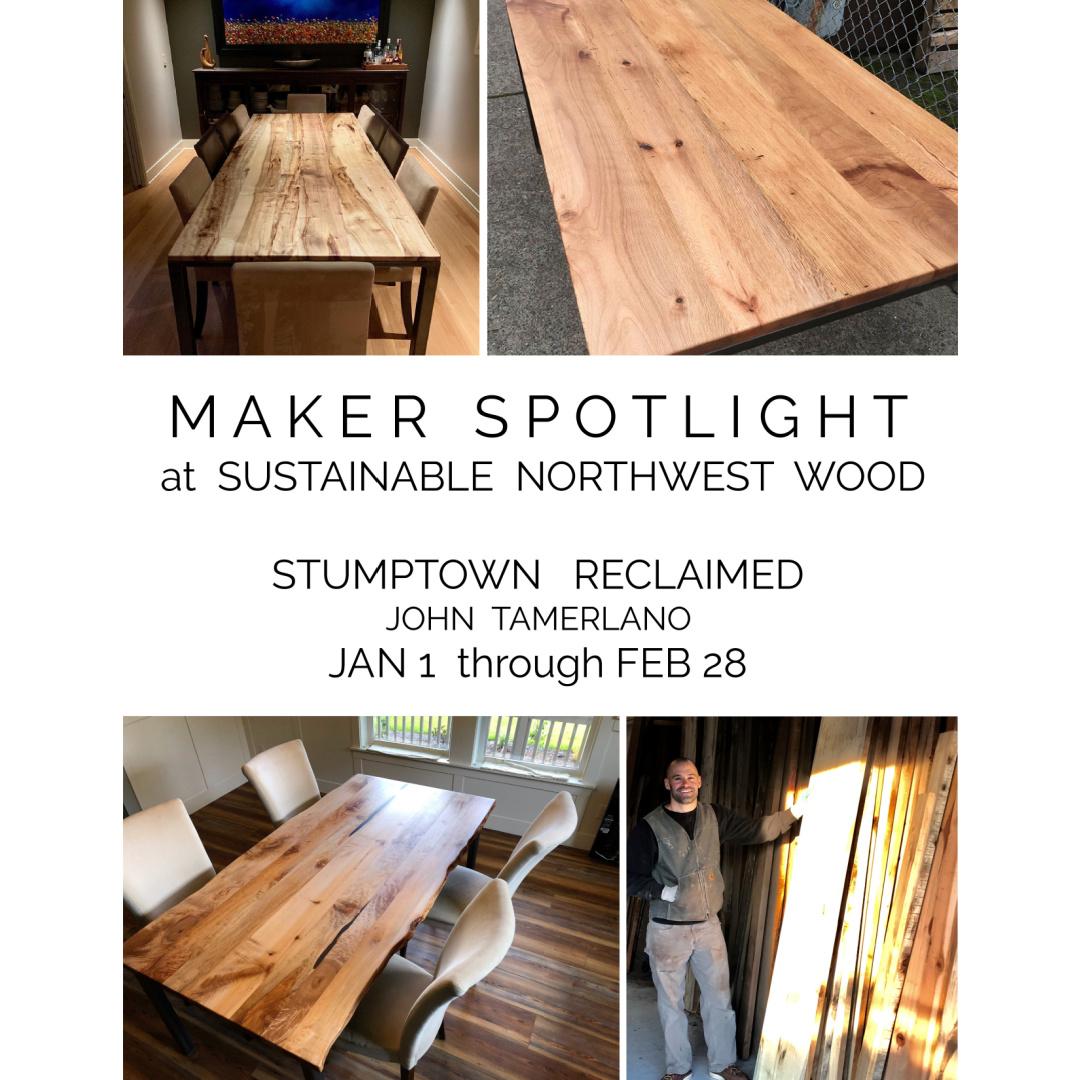 January 1 through February 28 we shine the spotlight on furniture maker John Tamerlano and his company Stumptown Reclaimed.