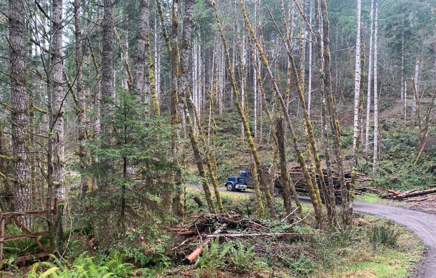 Allan and I drove to the highest point on the property where he started to describe what happened on that fateful night in the winter of 2019, when a snow, ice, and windstorm brought catastrophic damage to the Reserve’s Oregon White and Black Oak trees. The damaged caused by the storm was so intense that the gravel road to their small cabin was unpassable. When the storm subsided, the Reserve had lost nearly 60% of its Oregon White and Black Oak trees. Allan, his brother and the Elkton Reserve Land Trust always cherished their forest for its peaceful ecological values and rarely if ever harvested trees strictly for timber revenue.