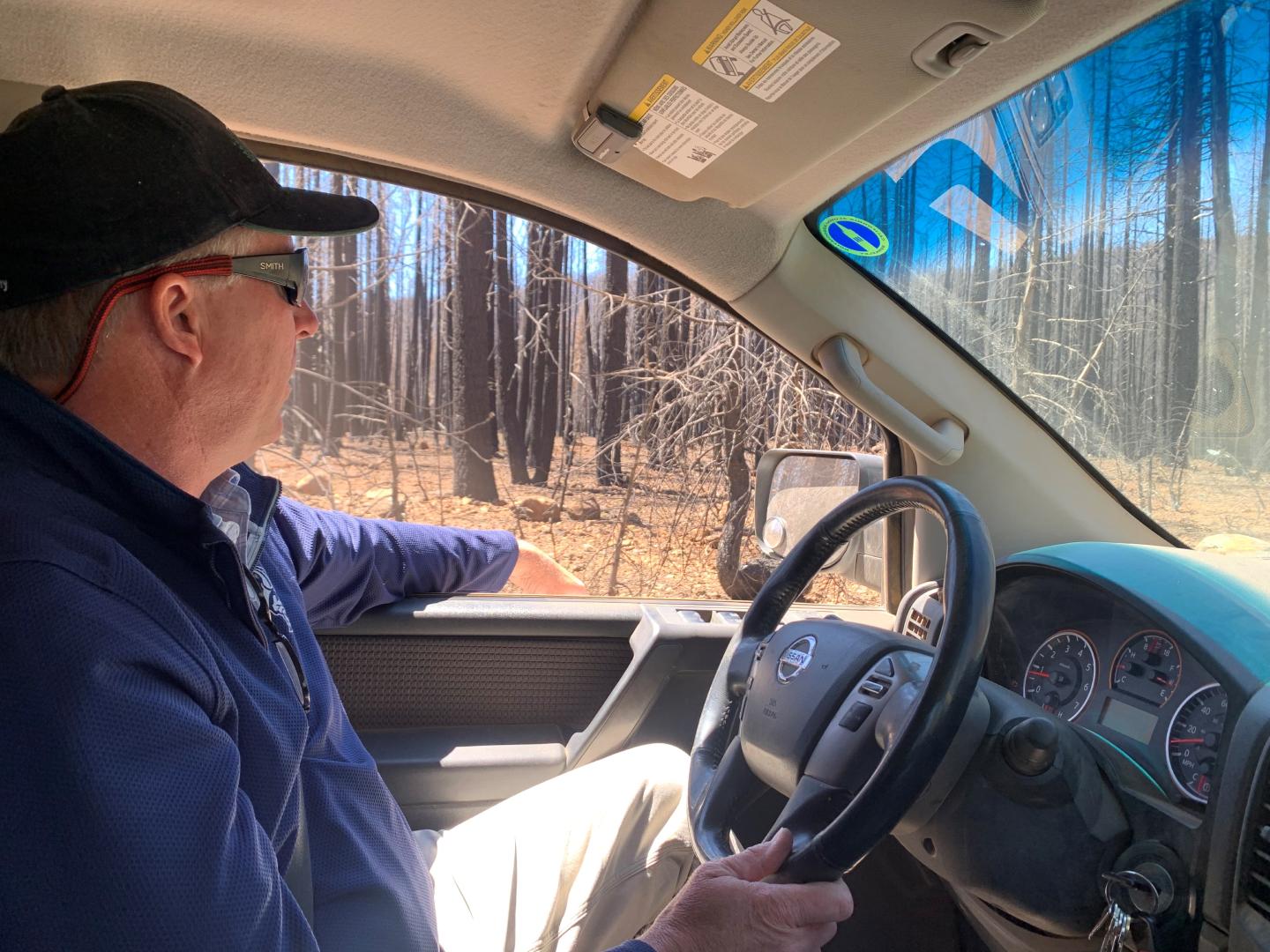 As I crested a hill on the northeast edge of Lake Almanor on a blue-sky day, I could see the intense fire damage across the lake and the closeness with which that fire came to the mill complex and the town of Chester. I met Niel at the main office, and we quickly jumped into a truck and headed out to look at the remains of the forest.