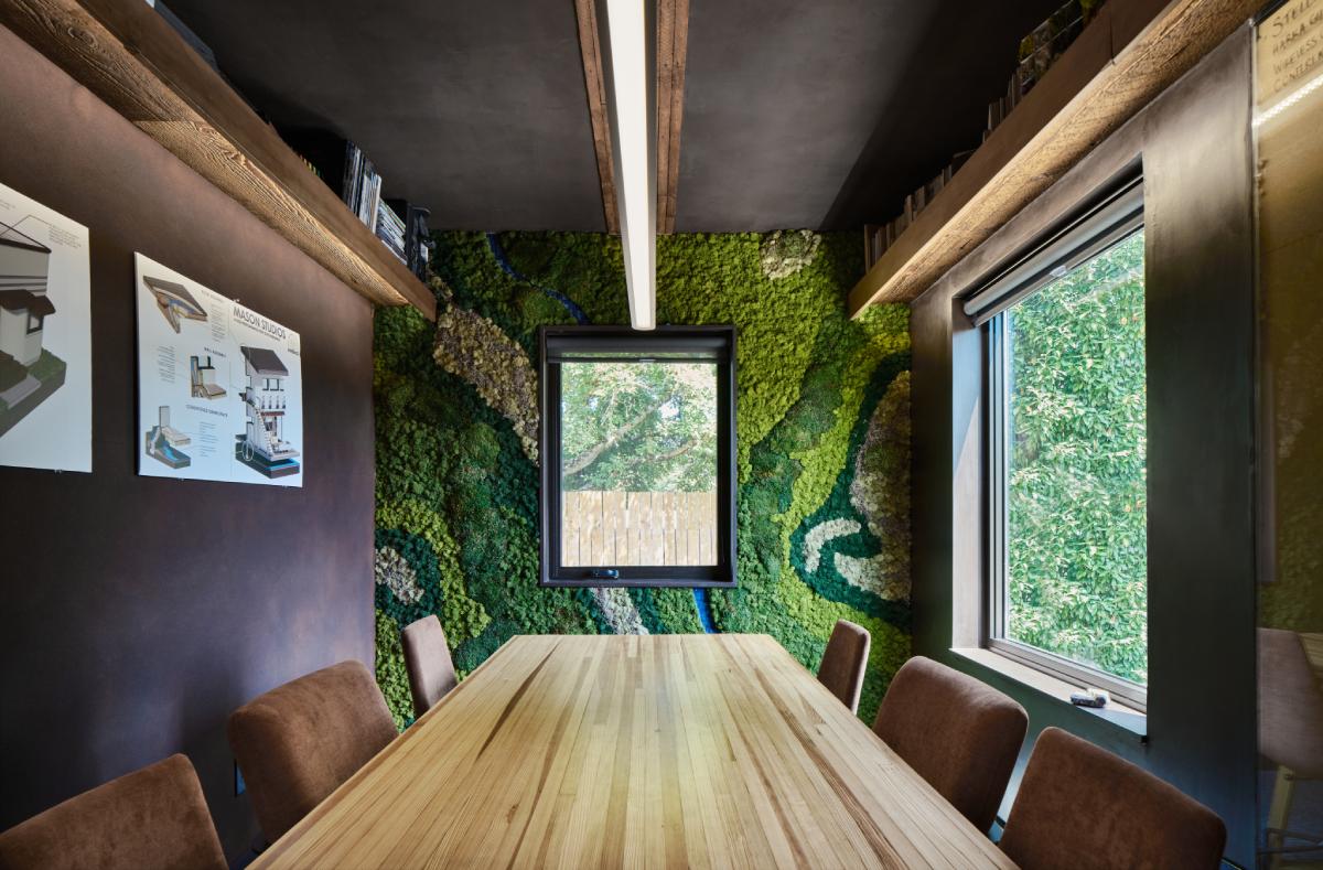 Patrick Donaldson was the driving force bringing this sustainably-minded, high performance renovation to life, and was hands-on for most of the build out. Lumber from the demolition was re-used in the remodel and all of the new lumber needed for the build was required to be FSC® Certified from Sustainable Northwest Wood. The interior uses low-toxicity materials for healthier indoor air quality and the design utilizes every precious square inch of the 600 square foot space for maximum efficiency. The roof was reframed with 14" TJIs and insulated with a thick blanket of cellulose. Check out more insulation & carbon sequestering tactics and products in the UNDER CONSTRUCTION story on Harka's website.