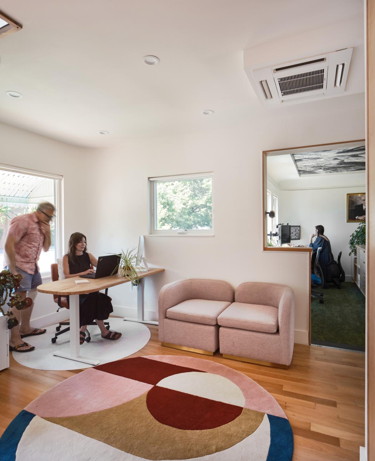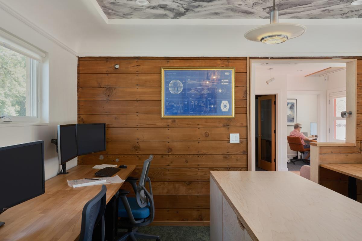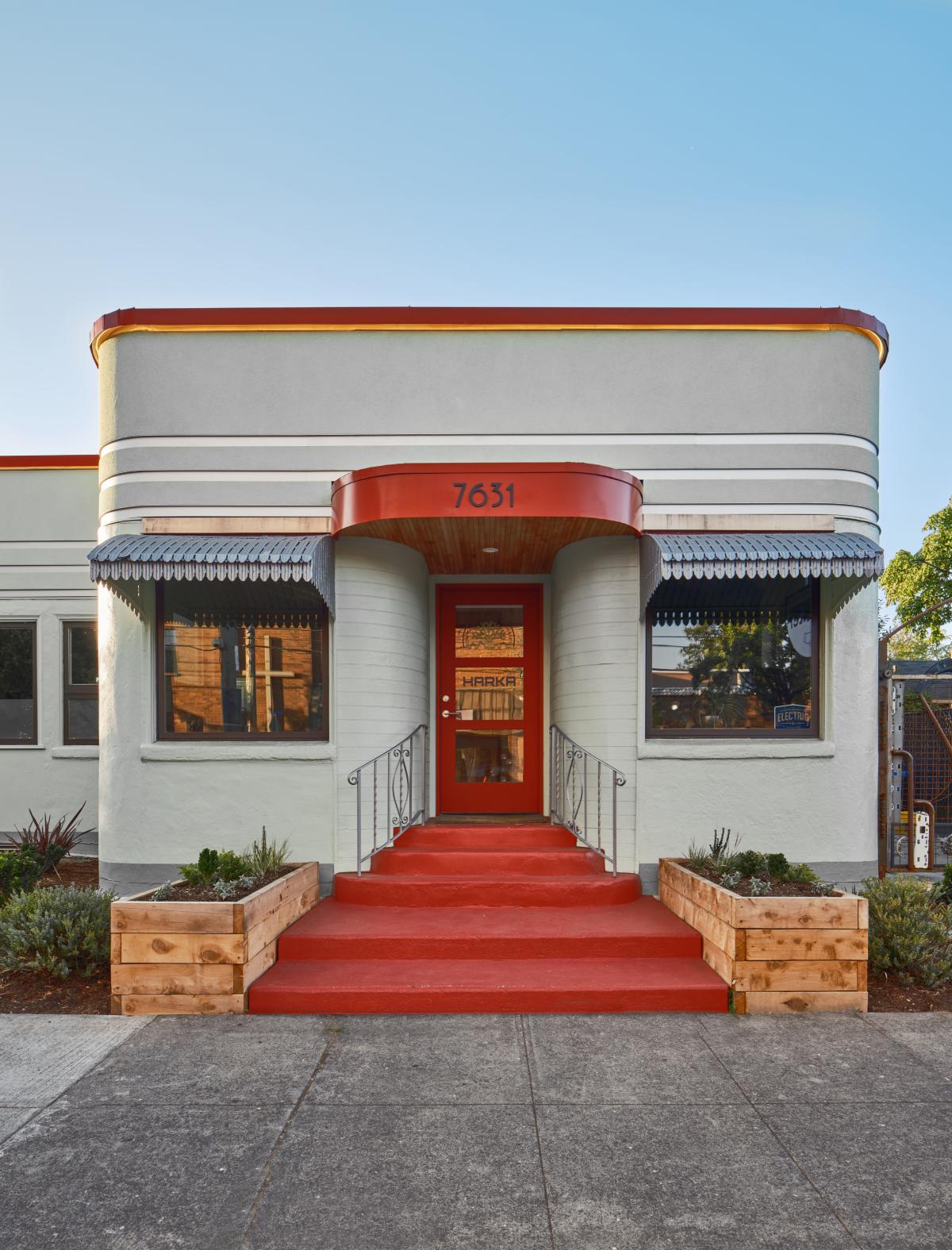 In the Montavilla neighborhood of Portland, Oregon is the newly renovated office of Harka Architecture. Built in 1940, the tiny Art Deco building has held dozens of businesses over its 80+ years of existence. When Harka's Principal Architect, Patrick Donaldson bought it, it had seen better days. It seems appropriate that this sweet little building would be revitalized and brought back to life by an architecture firm with a passion for such spaces.