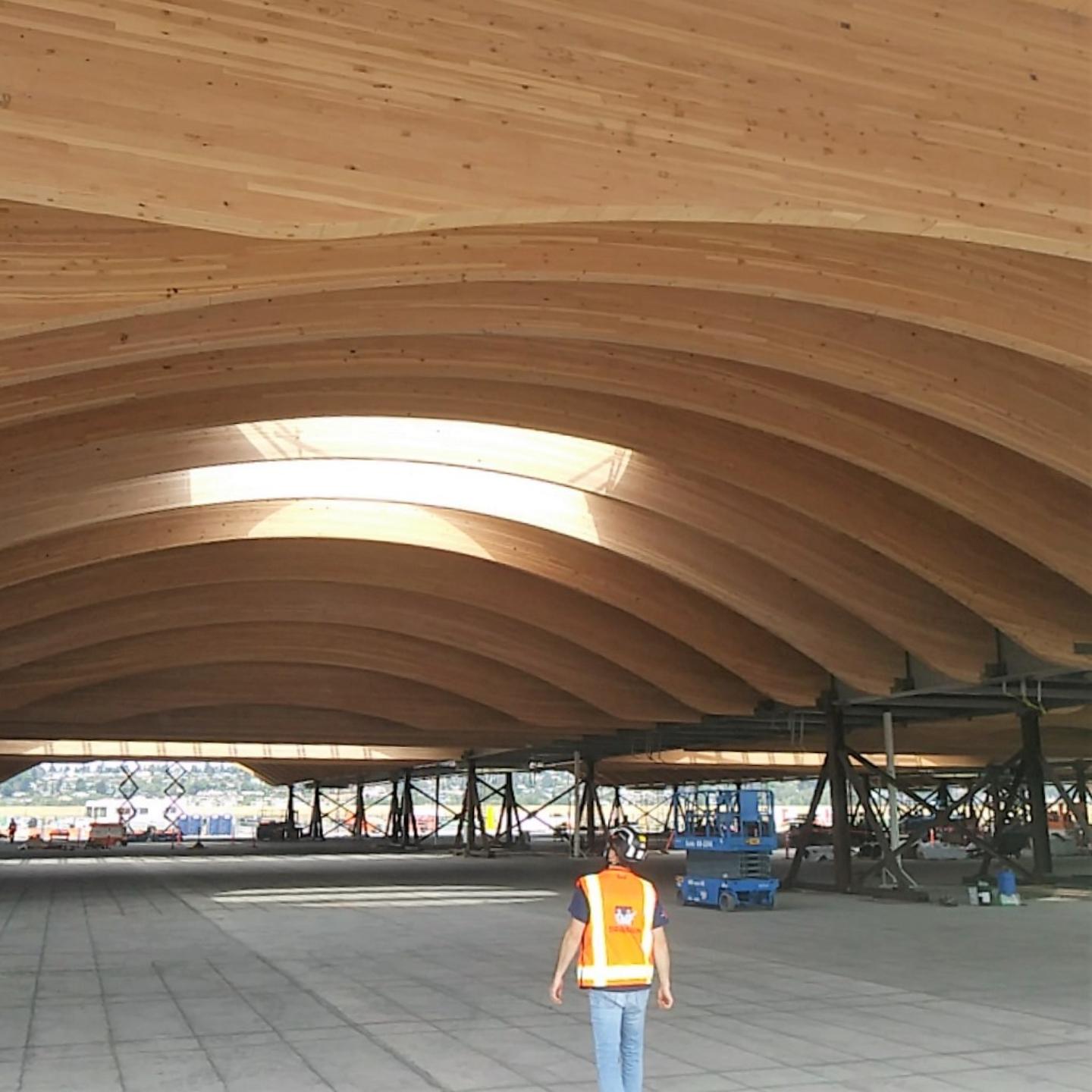 For the past few years, we have been working with ZGF Architects, Hoffmann Skanska, and Swinerton to plan wood elements in the new Main Terminal at Portland International Airport that would celebrate the forests and people of the Pacific Northwest.