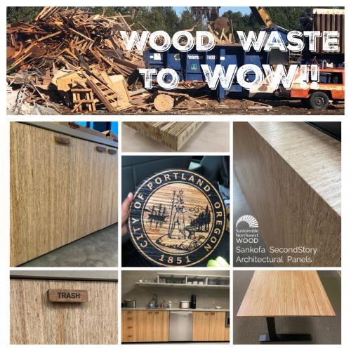 Every year, more than 500,000 TONS of clean wood are discarded from construction jobsites in Oregon alone. We are partnering with Sankofa Lumber to change that. Sankofa processes new construction wood waste into reusable, FSC Certified Recycled lumber and beautiful architectural panel products in Portland Oregon. Wood scraps are remanufactured by a millwork shop, just south of Portland, creating jobs and supporting our local communities.