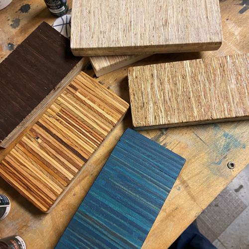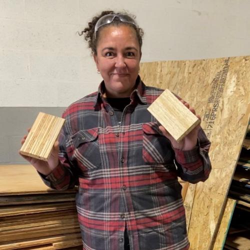 Recycling and reusing wood waste is climate-smart, storing the embodied carbon when this wood is built back into buildings, and supports a network of small businesses in our region. SecondStory Architectural Panels can be used for wall cladding, casework, table tops, furniture, cabinetry, and more. Reusing wood waste reduces greenhouse gas emissions and stores the embodied carbon in buildings instead of releasing it as it decays in landfills or when burned as boiler fuel.
