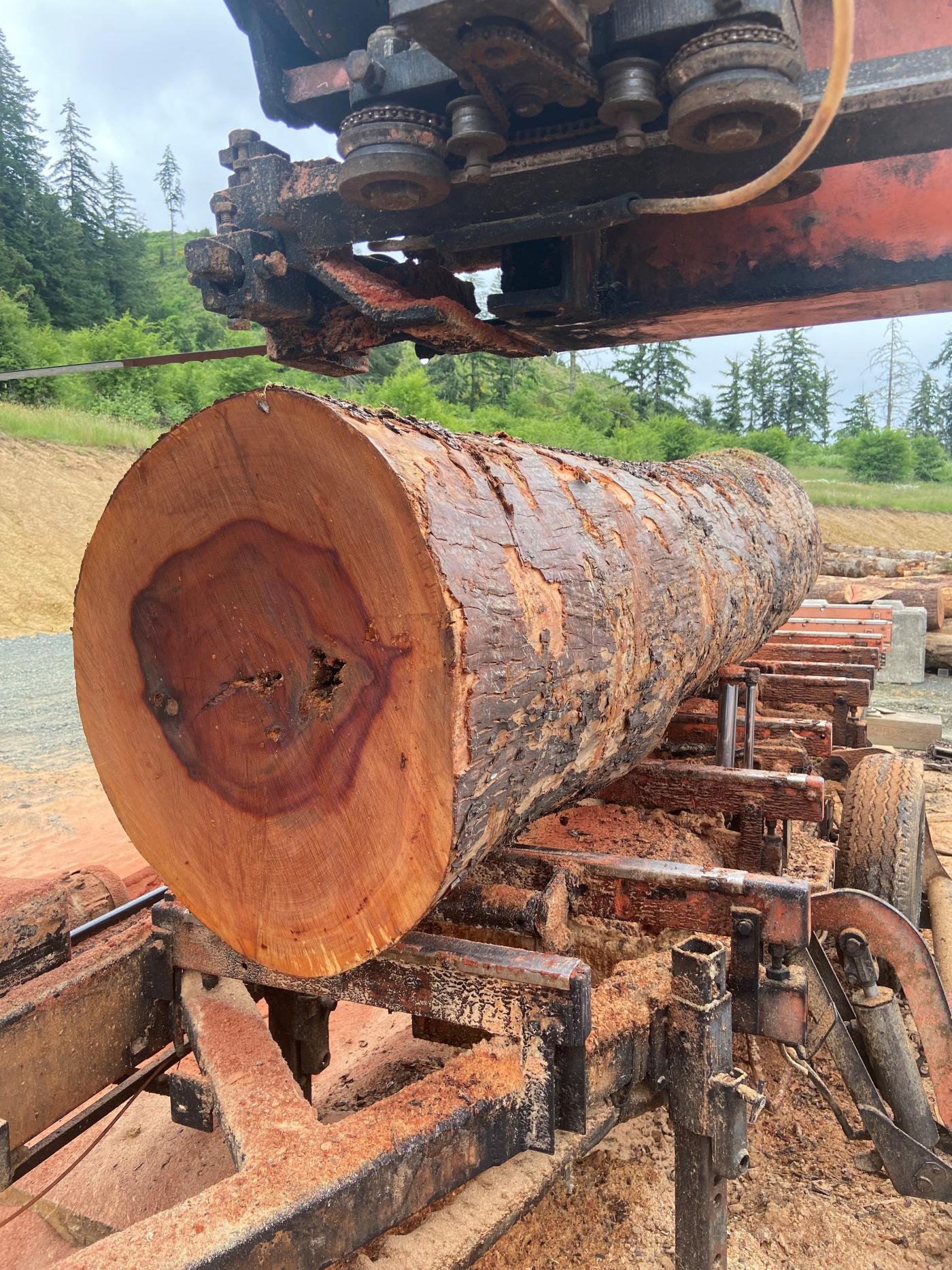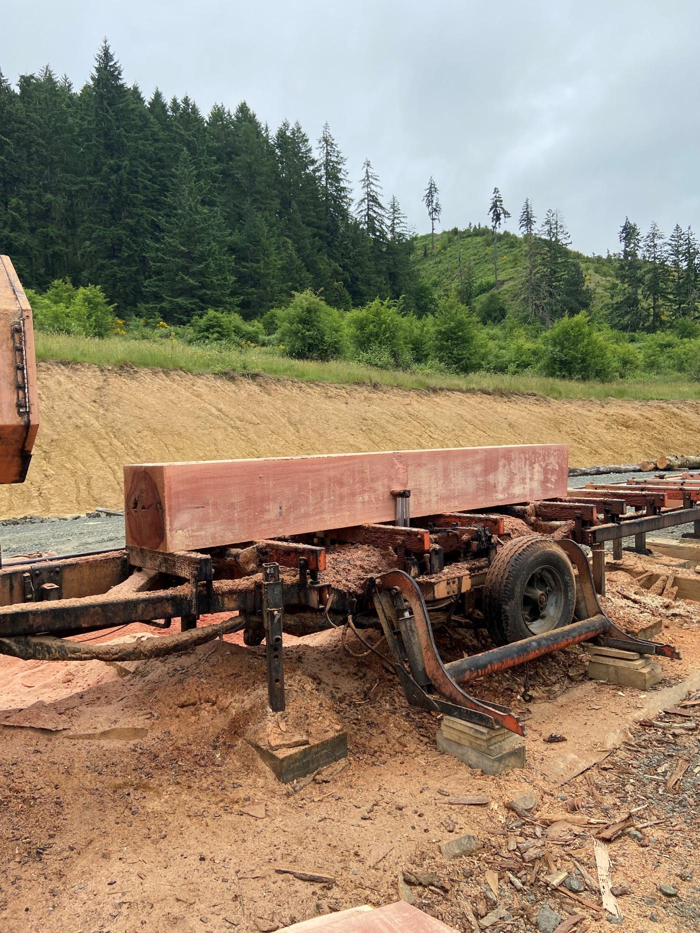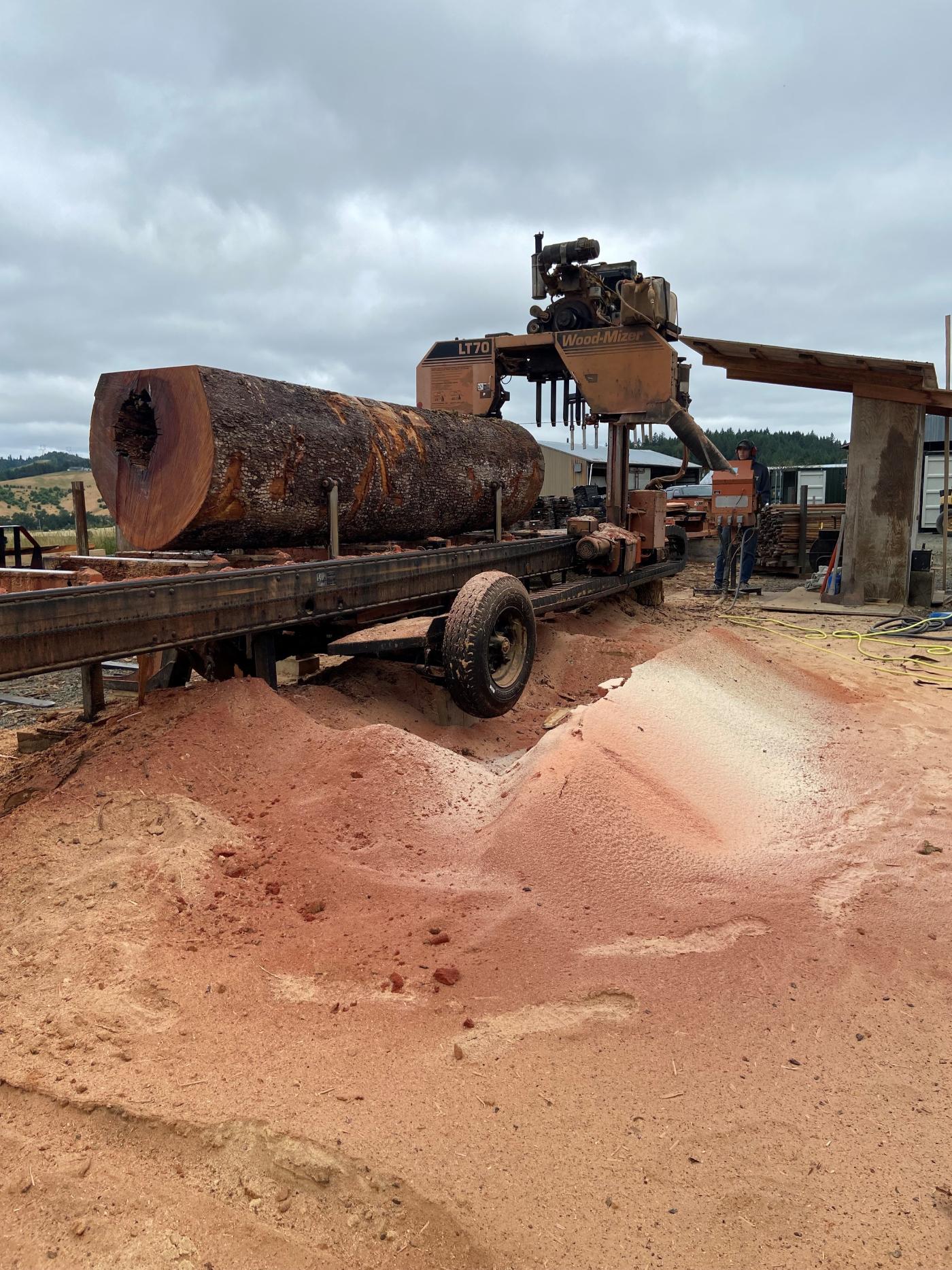 When we arrived, they had a huge Madrone log on the mill that had been salvaged from other forest harvesting activities. Often when loggers are cutting Douglas fir, they just cut Madrone trees out of the way and leave them in a slash pile. This mill has built relationships with a network of loggers in the area who will alert them when they’re in a stand of hardwoods, which have historically been undervalued in the quest to supply the world’s demand for Doug fir. Salvaging these hardwoods and creating markets for them adds value to the species and creates job opportunities in rural Oregon.