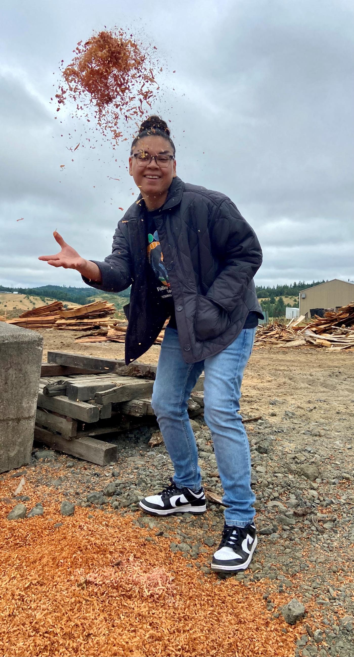 There was much discussion about the previously mentioned “waste pile” and how we might utilize at least some of those wonderfully odd-shaped pieces and sell them for coffee table tops, shelving, or other useful products. There is soooooo much wood waste in our industry – piles of offcuts and mountains of Painted Hills looking sawdust. This mill has already implemented some creative solutions, such as separating the Oregon White Oak sawdust for mulch at nearby blueberry farms and mushroom growers. Sustainable Northwest Wood is investing in education around the benefits of biochar for our local mill partners. Taking the biomass and turning it into biochar will capture, store and even absorb carbon from the atmosphere, results in an incredible soil amendment for local agriculture, and is a potential income stream from wood waste for the mills. More on that to come.