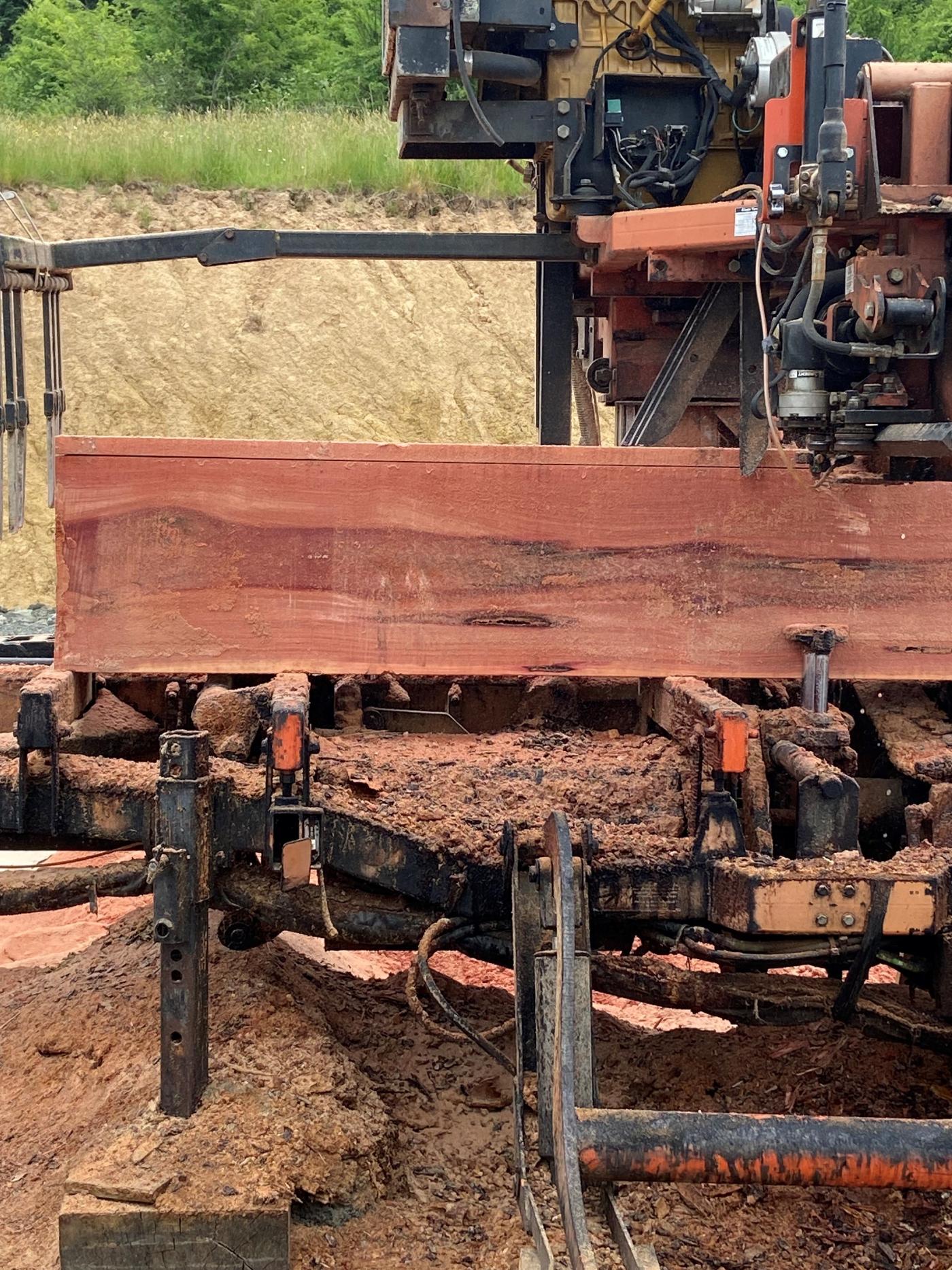 One such job is that of the sawyer – the sawmill operator who has the challenging job of “reading” and cutting each log into beautiful, useful boards. Salvaged hardwoods are not grown and groomed their entire life for their lumber, so each log is unique, every cut carefully considered to get the best and highest use. Luke, a 23 year old sawyer, studies the log, adjusting the controls on the Wood-Mizer LT-70 mill to turn the log just so, and sets the blade height for the first cut to remove the outer bark – the jackets. Each cutting pass, turning the log, moving the jackets to the waste pile takes time and careful consideration.