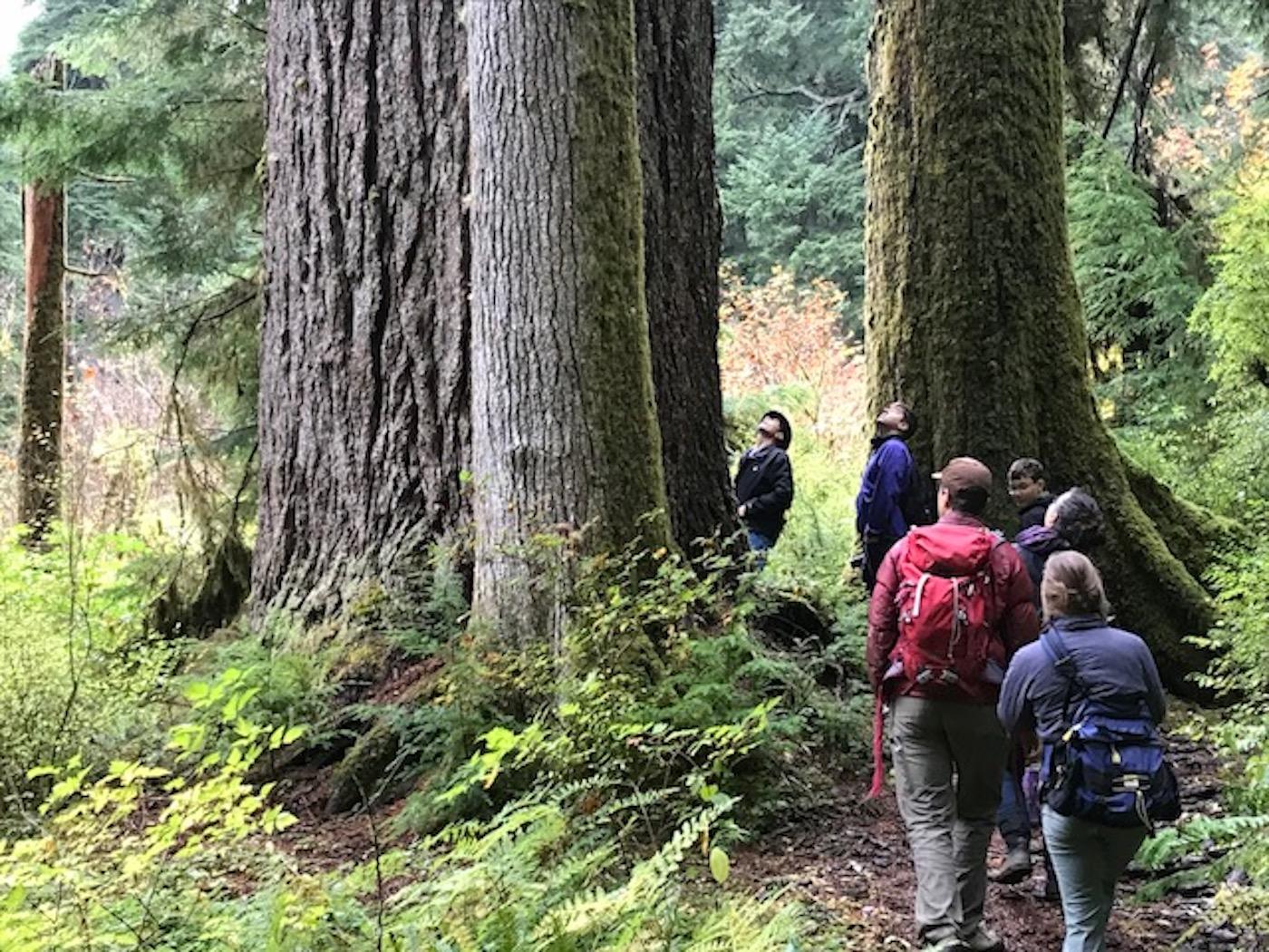 As we stood under the canopy of some of the tallest trees in Oregon, Debora Johnson pointed out the layers of the forest in the understory of salmonberry, Oregon grape, devil’s club, sword ferns and vine maple that play a vital role in a healthy forest ecosystem. Towering nearly 300 feet overhead, the canopy of massive Douglas Fir and Western Hemlock was astounding. With trees estimated to be about 500 years old, this stand of old growth forest was teeming with life, rich in biodiversity and stood in stark contrast with the moonscape eeriness of the clear-cut land we had walked earlier in the day.