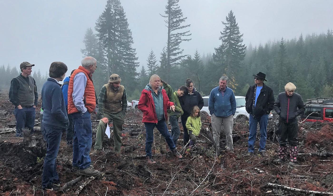 The day’s educational adventure was organized and led by members of the Build Local Alliance, who invited forest management experts and co-authors of the book Ecological Forest Management, Debora and Norman Johnson, to walk and talk with us along the way. We made several stops on the caravan style drive to the trailhead to observe and discuss the vast differences in forest management practices.