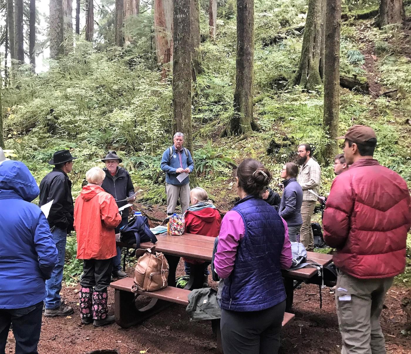 We stopped for lunch with the roar of the Stilez River in the background, while engaging conversations ensued around the topics of climate change, wildfires, Oregon state law regarding logging practices, economics vs environment, the secret life of fungi, and who packed the best sack lunch. This was an outing with people of all walks of life and interests, from toddlers to retirees, forest land owners to hobbyist wood workers, and the diversity of the people made for unique perspectives on the variety of topics that bubbled up throughout the day. As the day waned and the adventure came to a close, I walked away from this Walk in the Woods feeling an awe that only the ancients can inspire and deep gratitude that this Outstanding Natural Area will be preserved for generations to come.