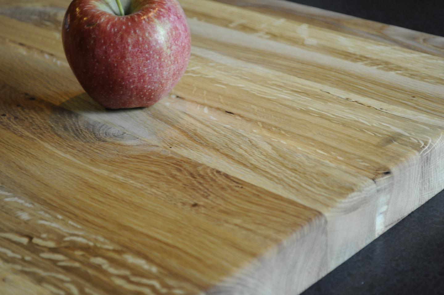 Solid Wood Surfaces intended for direct cutting should be sealed with a food grade finish designed to be reapplied frequently to re-seal the knife cuts. There are countless brands and combinations of ingredients that are designed to seal and protect chopping surfaces. We love Walrus brand cutting board oil, which is a blend of coconut oil, beeswax, mineral oil, and vitamin E. Check Walrus Oil for more information and purchasing.